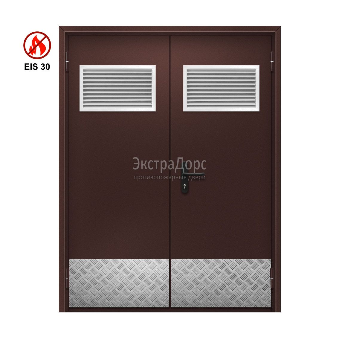 Двупольная противопожарная дверь EI 30 ДГ-02-EI30 ДП84 двупольная глухая с решеткой в Ногинске