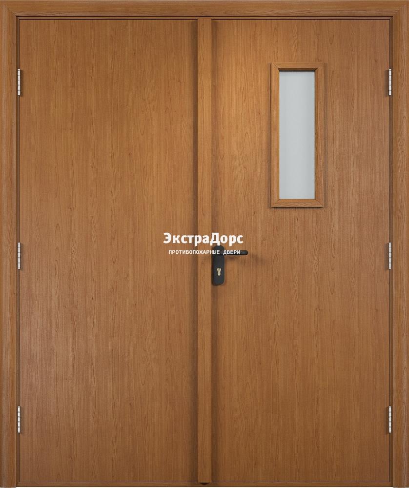Двупольная противопожарная дверь ДМП-01-30 двухстворчатая со стеклом дуб в Ногинске