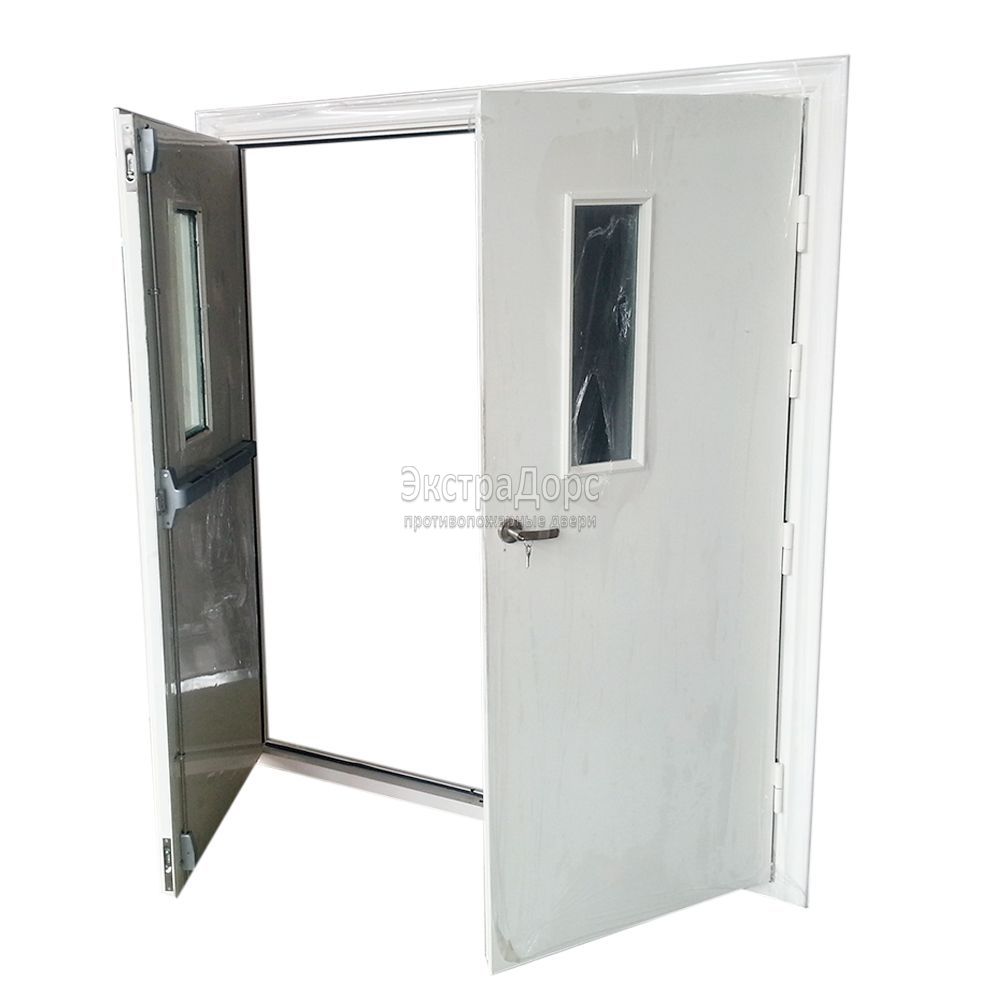 Двухстворчатая огнестойкая дверь EIW 60 двупольная стальная со стеклом в Ногинске