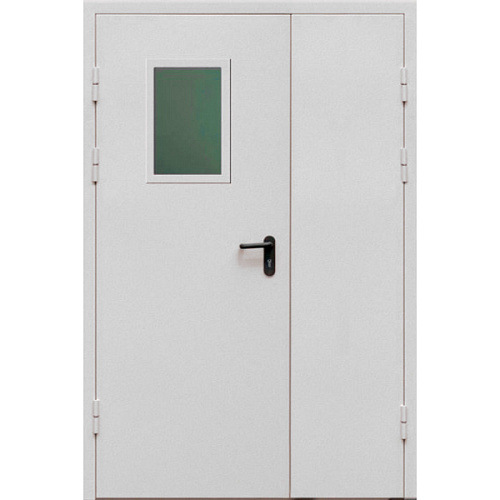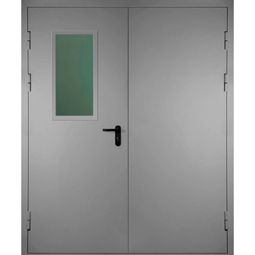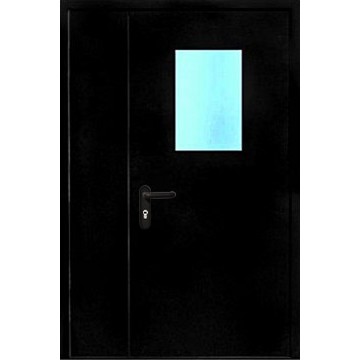 Распашная дверь огнестойкая полуторная с окном порошковое напыление