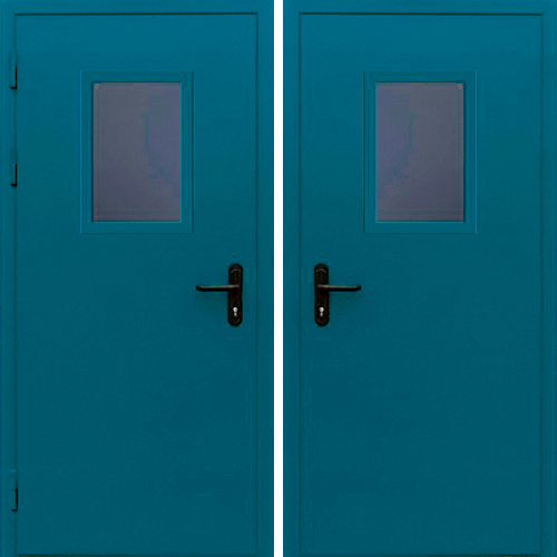 Распашная дверь огнеупорная двупольная с окном порошковая