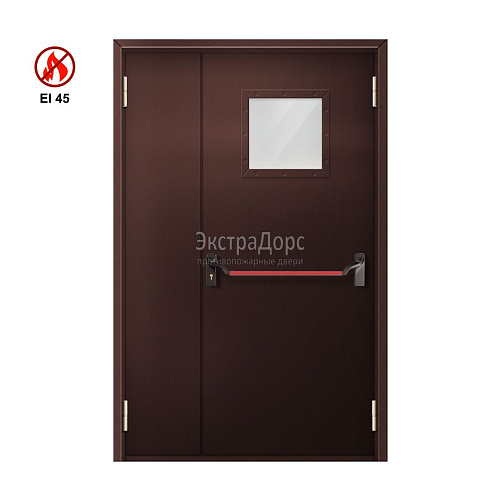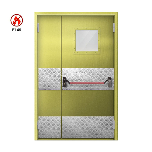 Противопожарная дверь EI 45 ДОП-EI45 ДП138 полуторная остекленная с антипаникой