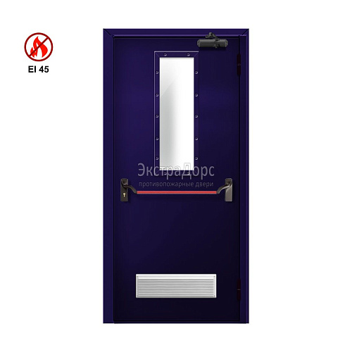 Противопожарная дверь с одной решёткой EI 45 ДО-01-EI45 ДП147 однопольная остекленная с антипаникой