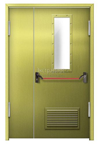 Противопожарная дверь EI 60 дымогазонепроницаемая стальная со стеклом, антипаникой и решеткой