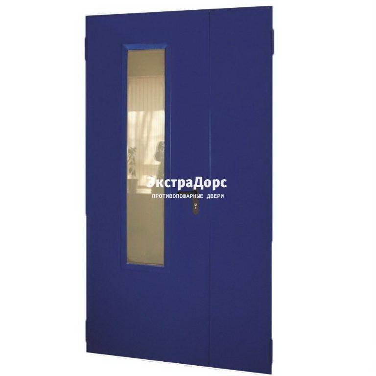 Дверь с выпадающим порогом противопожарная EI 90 двупольная синяя со стеклом в Ногинске