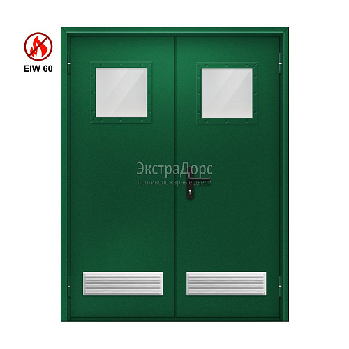 Дверь огнестойкая EI 60 ДГ-02-EI-60 полуторная глухая с решёткой