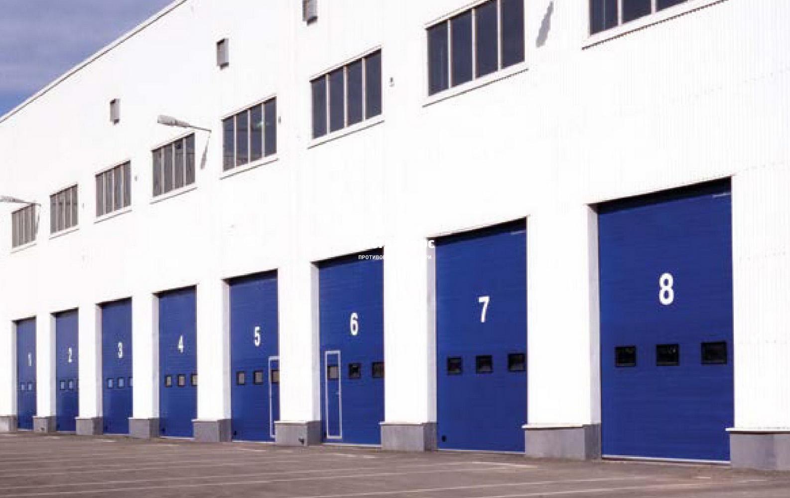 Синие огнеупорные промышленные ворота с окнами в Ногинске