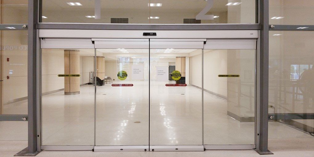 Противопожарная безрамная дверь со стеклом в бизнес центр в Ногинске