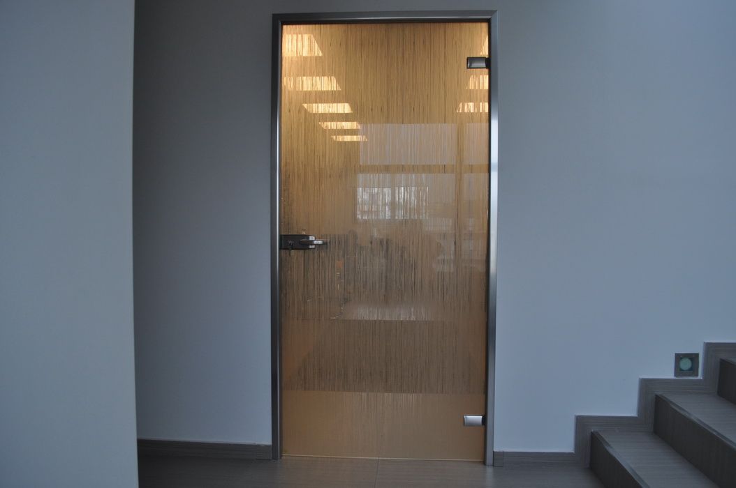 Противопожарная безрамная дверь со стеклом в БЦ в Ногинске